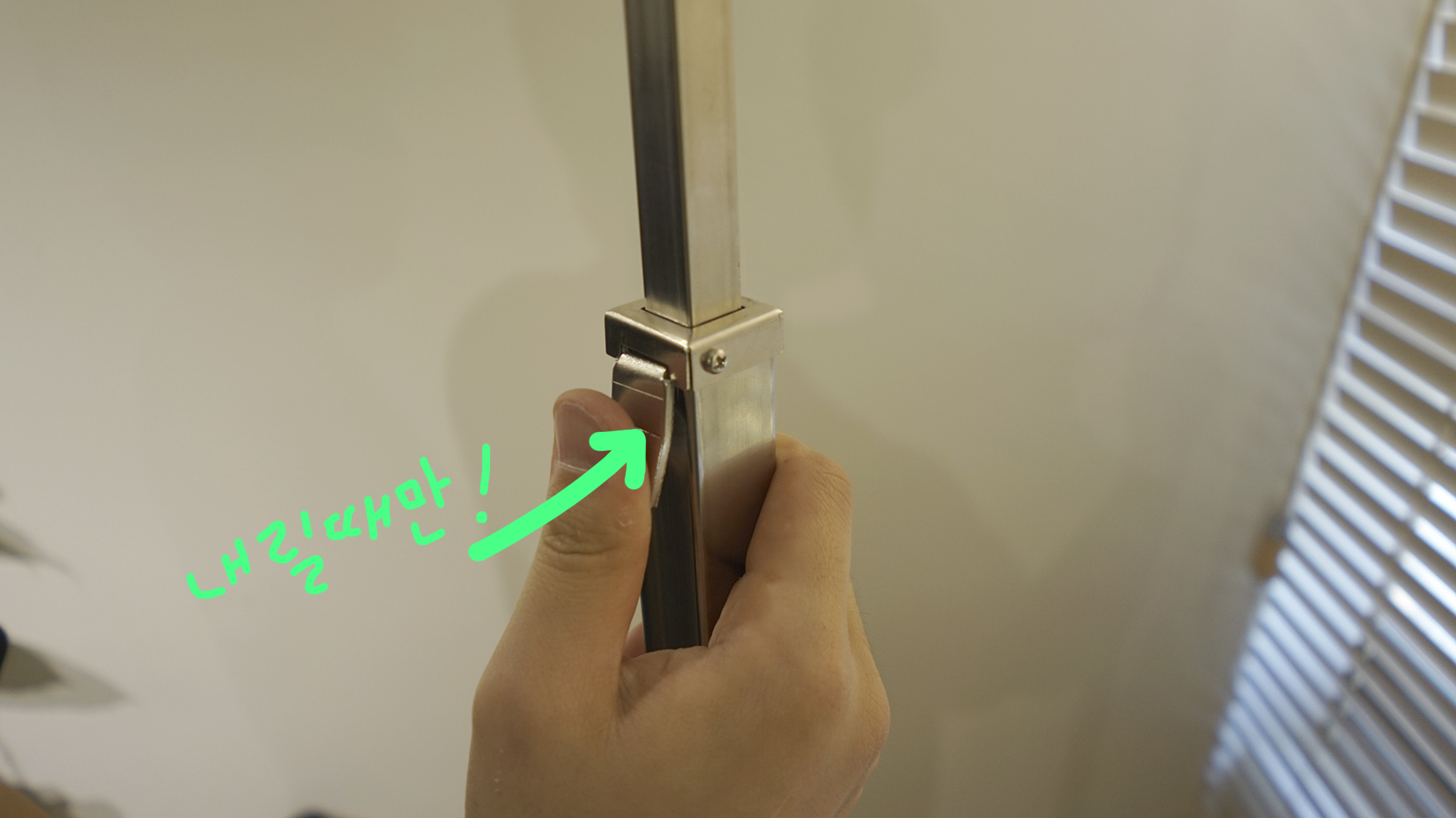 이 손잡이 버튼을 누른 채 상하로 이동시켜 보세요.